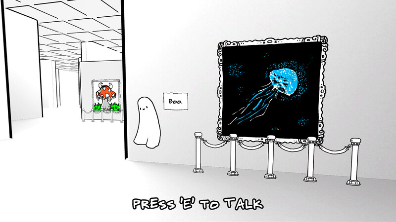 this game is oddly creepy. at first it seems like a nice drawing game with easter eggs, but even though the walls are filled with user created artworks, it's empty with the exception of a few scarce NPCs claiming an exit.